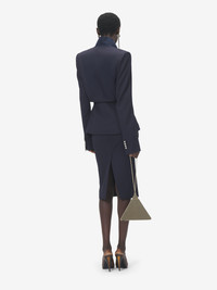 Single-breasted jacket in navy grain de poudre featuring inward-pointing peak lapels. Chest pocket, cinched waist and two jetted pockets on the sides. Finished with a single button fastening. Product details - Peak lapels - Side jetted pockets - Single button fastening - This product contains 42% of certified wool and 58% of wool sourced from producers following regenerative practices, Kering is partnering among others with the Savory Institute to promote and support the regenerative production of raw materials and utilize Savory's institute methodology, (Ecological Outcome Verification) - Product code: 870312QJAAC4003 - Made in ITALY - Material: 100% Wool