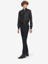 Bomber jacket in black soft lambskin leather. Stand collar, epaulettes, two side pockets and frogging embroidery on the chest. Finished with a front zip fastening. Product details - Standing collar - Side pockets - Front zip fastening - Product code: 842568Q5AQP1000 - Made in ITALY - Material: 100% Lamb Leather