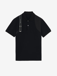 Polo shirt in black cotton piquet. Tonal harness with contrast piping and McQueen logo. Product details - Point collar - Short sleeves - Product code: 857157QXAAK1000 - Made in ITALY - Material: 100% Cotton