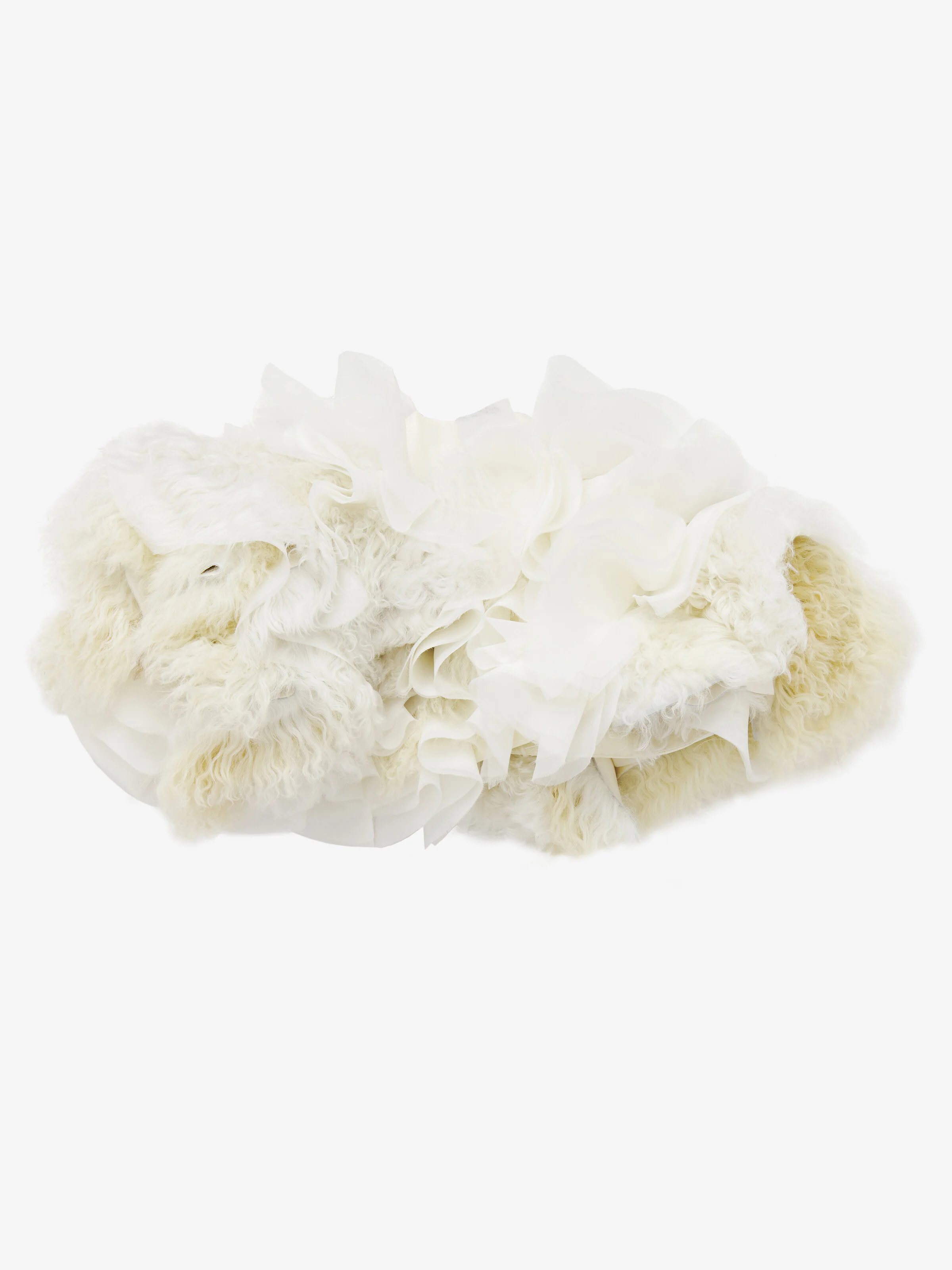 Sculpted bolero made from a mix of natural beige shearlings with different lengths and three-layer organza frills. Product details - Short sleeves - Product code: 851715Q5AQO8004 - Made in ITALY - Material: 100% Silk