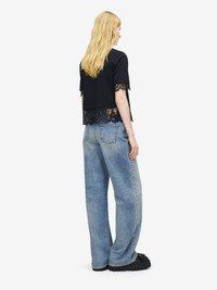 Crew neck T-shirt in black cotton jersey. Tonal lace panels at the sleeves and hem. Product details - Crew neck - Short sleeves - Product code: 850805QLAE61000 - Made in ITALY - Material: 100% Cotton