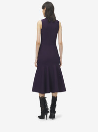 Midi dress in violet stretch viscose with a sheer lace panel on the chest. Crew neck with ruffle detailing and flared skirt. Finished with a back zip fastening. Product details - Crew neck - Sleeveless - Back zip fastening - Product code: 848832Q1BE65144 - Made in ITALY - Material: 66% Viscose, 20% Polyamide, 13% Polyester, 1% Elastane