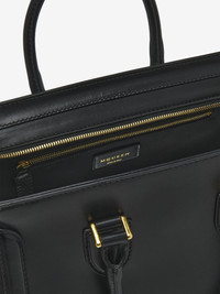 The Large Birdee Bag – structured bag crafted from black smoooth calf leather and framed with leather bombe details. This bag can be worn in multiple ways: carry it in your hand using the handles or wear over the shoulder or across the body using the adjustable leather strap. Product details - Dimensions: Length 30 x Height 24.5 x Depth 16.5 cm / 11.8 x 9.6 x 6.5 inches - Strap drop: 44-50 cm / 17.3-19.7 inches - One main compartment with zip pocket - Detachable and adjustable leather strap - Zip fastening - Brass hardware with shiny gold finishing - Black canvas lining - Product code: 8379111MAAC1000 - Made in ITALY - Material: 100% Calf Leather