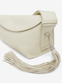 Tassel charm in cream smooth lamb nappa leather featuring silver-finished hardware with a dog clip and the embossed McQueen logo. Product details - Dimensions: Length 2 x Height 37 x Depth 1 cm / 0.7 x 14.5 x 0.3 inches - Brass hardware with silver finishing - Product code: 8300981VAAA9701 - Made in Italy - Material: 100% Lamb Leather