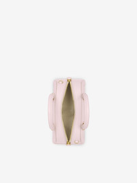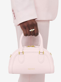 The Mini Birdee Boston Bag – structured bag crafted from rose smooth calf leather and framed with leather bombe details. This bag can be worn in multiple ways: carry it in your hand using the handles or wear over the shoulder or across the body using the adjustable leather strap. Product details - Dimensions: Length 21 x Height 13 x Depth 10 cm / 8.2 x 5.1 x 3.9 inches - Strap drop: 48-55 cm / 18.9-21.6 inches - One main compartment with card slot - Detachable and adjustable leather strap - Zip fastening - Brass hardware with shiny gold finishing - Beige canvas lining - Product code: 8379131MAAC5623 - Made in Italy - Material: Calf Leather