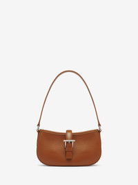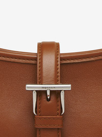 The Mini McQueen T-Bar Shoulder Bag – rounded silhouette crafted from dark tan smooth calf leather. Can be worn on the shoulder using the leather strap. Detailed with a statement T-Bar buckle in antique silver tone metal engraved with the McQueen logo. Product details - Dimensions: Length 23 x Height 12 x Depth 6.5 cm / 9 x 4.7 x 2.5 inches - Strap drop: 22 cm / 8.7 inches - T-Bar length: 4 cm / 1.6 Inches - Magnetic and zip fastening - One main compartment - Beige canvas lining - Product code: 8379151MAAD2525 - Made in Italy - Material: Calf Leather