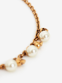 Antique gold-finished chain short necklace detailed with natural white crystal pearl-like and metal skulls. Adjustable length. Brass hardware. Product details - Please note, standard Alexander McQueen packaging is not available on employee sale purchases. - All sales are final and may not be returned or exchanged. Some products may present slight imperfections and all products are sold on an “as is”, final sale basis. - All products purchased by the employees are strictly personal and may not be resold. Failure to comply with the Policy will result in serious disciplinary measures. - Product code: 667544J160Z4040 - Made in Italy - Material: Brass