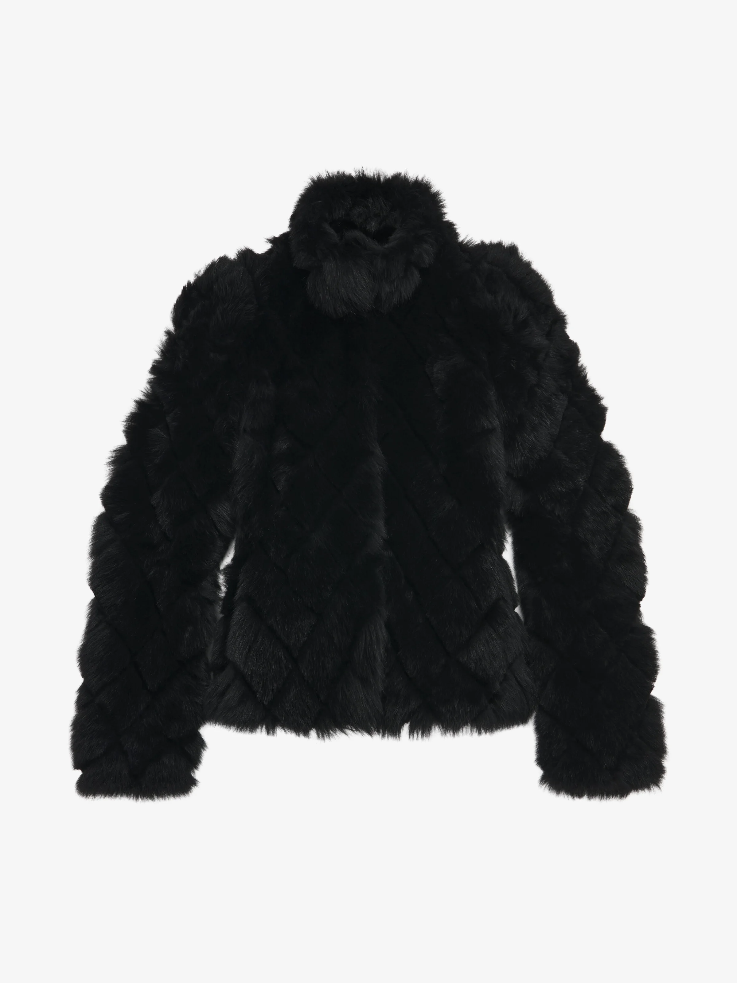 Jacket in black laser-cut shearling with a quilted effect. High collar, side pockets and concealed front fastening. Product details - High collar - Side pockets - Concealed front fastening - Product code: 858199Q5AQ91000 - Made in ITALY - Material: 100% Lamb Fur