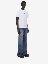 Stonewashed denim jeans. Low rise, baggy fit. Featuring all-over screen printed signature skull motif, belt loops with metal signature skull plaque detail and finished with a button and front zip fastening. Product details - Low rise - Belt loops with skull plaque detailing - Button and zip fastening - Product code: 801177QYABC4308 - Made in Italy - Material: 100% Cotton
