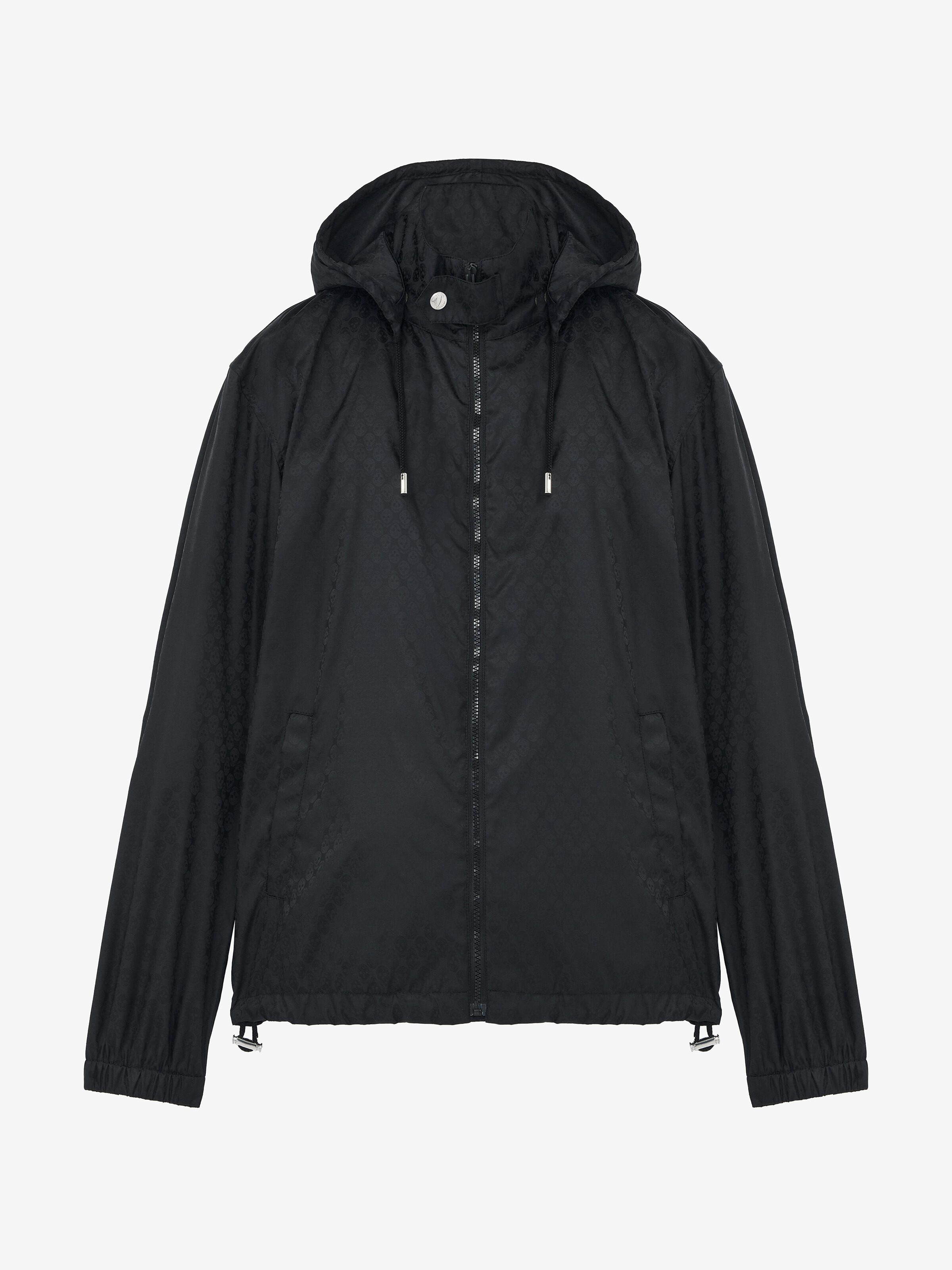 Windbreaker in black nylon skull jacquard. Drawstring hood, side pockets and front zip fastening. Product details - Side pockets - Front zip fastening - Product code: 838592QRACA1000 - Made in Italy - Material: Polyamid