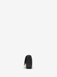 The Small McQueen Skull Flower Bag – elongated east-west silhouette crafted from black calf leather. Rounded flap with crystal-embellished McQueen Skull Flower. The bag can be worn cross-body using the leather and chain strap. Product details - Dimensions: Length 21 x Height 8 x Depth 4 cm / 8.3 x 3.1 x 1.6 inches - Strap drop: 56 cm / 22 inches - McQueen foil lettering on the back - Magnetic fastening - One main compartment with card slot - Brass hardware with shiny gold finishing - Black suede-effect lining - Product code: 8360371MAAE1000 - Made in Italy - Material: Calf Leather