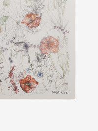 Ivory and red silk chiffon scarf featuring an all-over Spider Floral motif. The scarf is finished with the McQueen logo in the bottom right corner. Product details - Dimensions: 140 x 140cm / 55.1 x 55.1 inches - Product code: 8591203060Q9274 - Made in ITALY - Material: 100% Silk