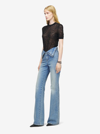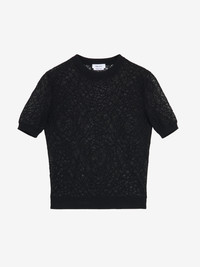 Black silk cotton top featuring a semi-sheer Spider Lace pattern. Rib knit crew neck, sleeve trims and hem. Product details - Crew neck - Short sleeves - Product code: 858371Q1BGH1000 - Made in ITALY - Material: 54% Cotton, 46% Silk
