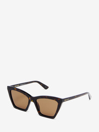 Havana acetate sunglasses fitted with solid brown lenses. The sunglasses have a geometric cat-eye shape and are detailed with a lasered McQueen logo on the temples. All McQueen eyewear is 100% certified UV protective (UVA and UVB rays). Product details - The Eastman Acetate Renew used in this style includes 27% recycled material achieved via mass balance approach. - Product code: 841637J07492305 - Made in ITALY - Material: Recycle Acetate & Bio Nylon Lens