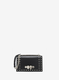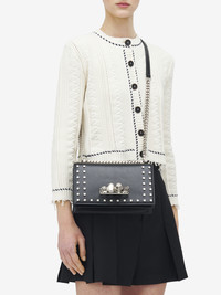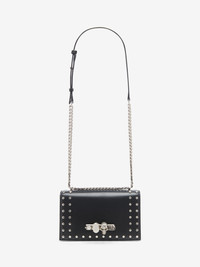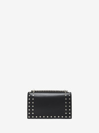 The Jewelled Satchel – black smooth calf leather embellished with silver tone metal flat studs. This bag can be worn in multiple ways: carry it in your hand using the ring handle or by doubling up the strap. Alternatively, wear over the shoulder or across the body using the leather and chain strap. Product details - Dimensions: 24 x 15 x 8 cm / 9.4 x 5.9 x 3.1 inches - Antique silver four-ring embellishment - One main compartment and one card slot - Adjustable leather and chain strap - Magnetic fastening - Brass hardware with antique silver finishing - Suede-effect lining - Can accommodate a smartphone - Due to the appearance of the product, we recommend stowing it in your hold luggage when passing through airport security. For the same reason we recommend not taking the bag to public places, such as law courts and sports stadiums, where there may be security checks - Product code: 55412814C281000 - Made in Italy - Material: Calf Leather