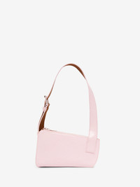 The McQueen T-Bar Sling pouch – asymmetrical and handcrafted from a single piece of cognac suede calf leather covered with a light pink coating with a crackled effect. Can be worn on the shoulder using the adjustable leather strap. Detailed with a statement T-Bar buckle in silver tone metal engraved with the McQueen logo. Product details - Dimensions: Length 20 x Height 11-13 x Depth 0.5-7 cm / 7.8 x 4.3-5.1 x 0.1-2.7 inches - Adjustable leather strap with silver tone metal T-Bar buckle - Strap drop: 23-33 cm / 9-12.9 inches - T-Bar length: 6.5 cm / 2.5 inches - McQueen metal lettering and external metal D-ring on the side - Zip fastening - One central zip compartment with card slot and metal D-ring - Cognac suede calf leather lining - Product code: 8135351AAWU1063 - Made in Italy - Material: Calf Leather