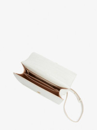Shiny deep ivory embossed croc calfskin leather Jewelled Satchel. This bag can be worn in multiple ways: carry it in your hand using the ring handle or by doubling up the strap. Alternatively, wear over the shoulder or across the body using the leather and chain strap. Product details - Dimensions: 24 x 14.5 x 8 cm / 9.4 x 5.7 x 3.1 inches - Gold four-ring embellishment encrusted with crystals - Two compartments and one flat zip pocket - Adjustable leather and chain strap - Antique gold chain strap - Brass hardware with antique gold finish - Suede-effect lining - Can accommodate a smartphone - Due to the appearance of the product, we recommend stowing it in your hold luggage when passing through airport security. For the same reason we recommend not taking the bag to public places, such as law courts and sports stadiums, where there may be security checks - Product code: 5541281HB0T9006 - Made in Italy - Material: Calf leather