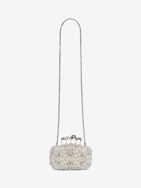White Knuckle Clutch featuring tonal crystal embellishment, studs and a handle adorned with crystal-encrusted rings. Product details - Dimensions: 10 x 18 x 5 cm / 3.9 x 7 x 1.9 inches - Removable chain strap - Brass hardware with an antique silver finish - Due to the appearance of the product, we recommend stowing it in your hold luggage when passing through airport security. For the same reason we recommend not taking the bag to public places, such as law courts and sports stadiums, where there may be security checks - Product code: 6762561VT119000 - Made in Italy - Material: Calf Leather