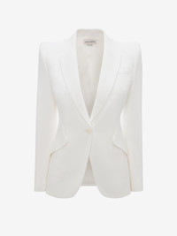 Women's Peak Shoulder Leaf Crepe Jacket in Light Ivory