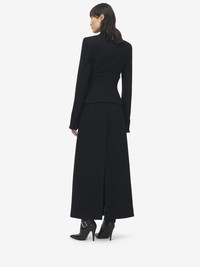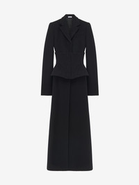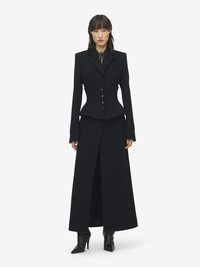 Single-breasted coat in black double wool cashmere. Notched lapels, fitted waist and corset detailing. Finished with a T-Bar chain back detail. Product details - Notched lapels - Chest pocket - Hook fastening - Product code: 842792QKABR1000 - Made in ITALY - Material: 50% Wool, 50% Cashmere