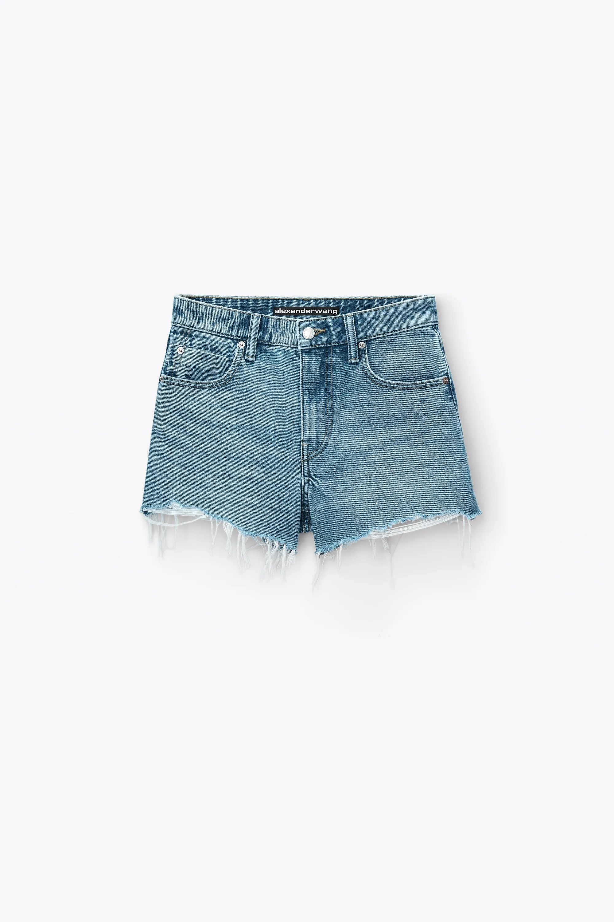 Cut to a high-rise, this light indigo denim cut-off bite short spotlights an unevenly hand-frayed hem for a natural, worn-in look. The signature 3D embossed logo at the back pockets amplifies this 5-pocket style in a light indigo wash. - zip fly, button closure - five-pocket style - composition: 100% cotton - made in china - form-fitting - model is 5’11 and wears a size 26 - 4DC2244299486 composition Body/Exterieur: 100%COTTON