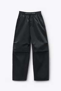 Black mid rise pleated knee pant detailed with articulated seams and a voluminous rounded leg shape. Finished with an exposed logo elastic waistband and stacked ankle silhouette. - exposed logo elastic waistband, faux fly - side-seam zip pockets - body composition: 74% cotton / 26% nylon - model is 5'11" and wears a size s - made in Vietnam - 1WC4254924001 composition Body: 74%COTTON/26%NYLON Elastic: 56%POLYAMIDE/31%POLYESTER/13%ELASTANE
