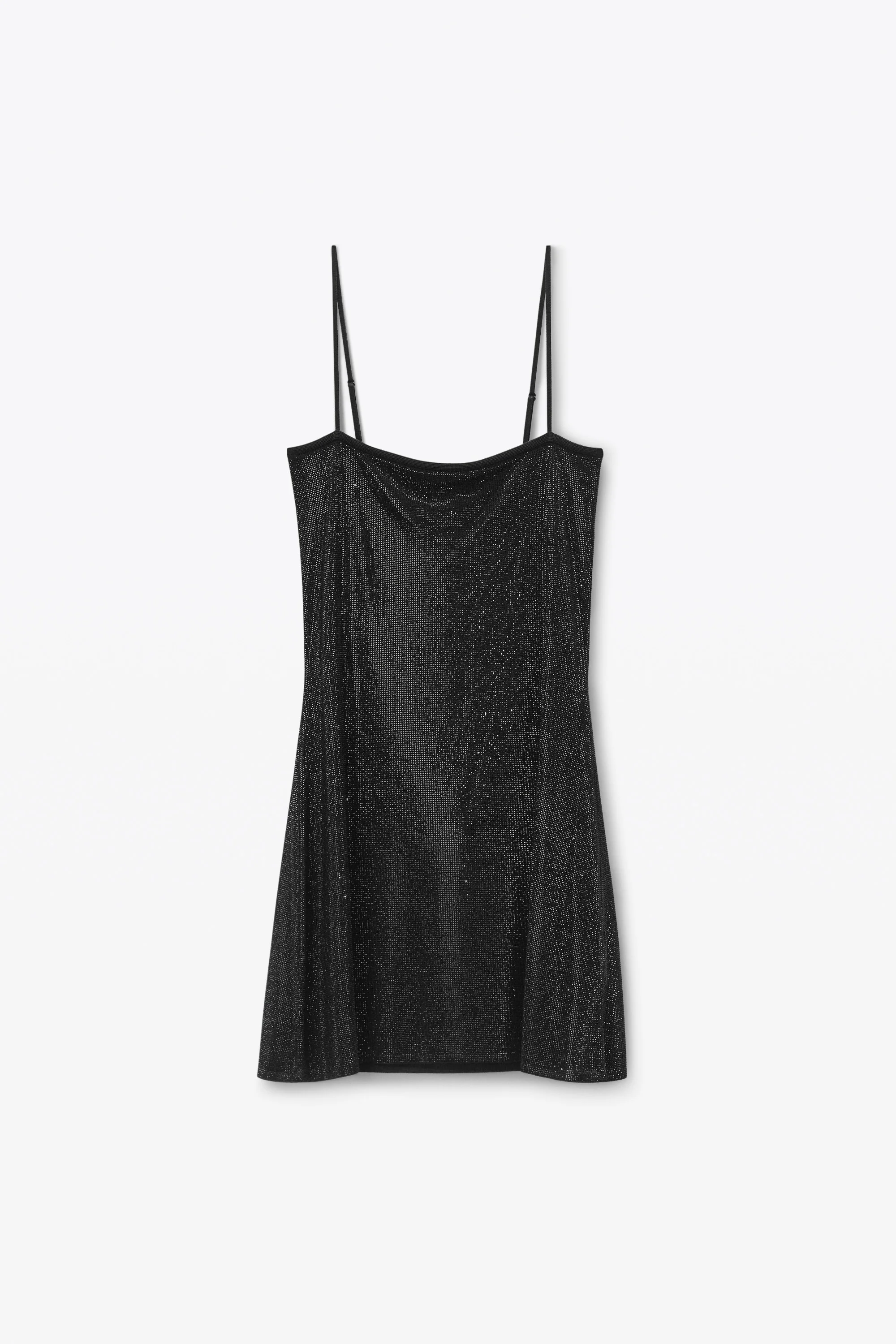 Crystal hotfix illuminates this black semi-sheer mini dress with an interior slip, while a square neckline and clean lines elevate this silhouette. - body: 100% viscose - trim: 83% viscose / 17% polyester - lining 1: 77% viscose / 20% polyamide / 3% elastane - made in china - model is 5'10 and wears a size s - 1KC3256056001 composition Body: 100%VISCOSE Trim: 83%VISCOSE/17%POLYESTER Lining: 77%VISCOSE/20%POLYAMIDE/3%ELASTANE