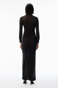 Black Crystal Hotfix Long-Sleeve Polo Dress