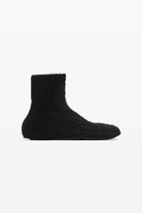 black nylon slipper bootie lined in luxurious faux fur and finished with a logo patch at the heel. set on a molded rubber sole with a soft chenille footbed for added comfort. - Round toe - upper: 94% nylon / 6% elastane - lining: faux fur - outsole: rubber - chenille footbed - made in China - 30425B024001 composition Upper: 94% NYLON 6% ELASTANE Outsole: 100%RUBBER WITH TEXTILE FLOCKING
