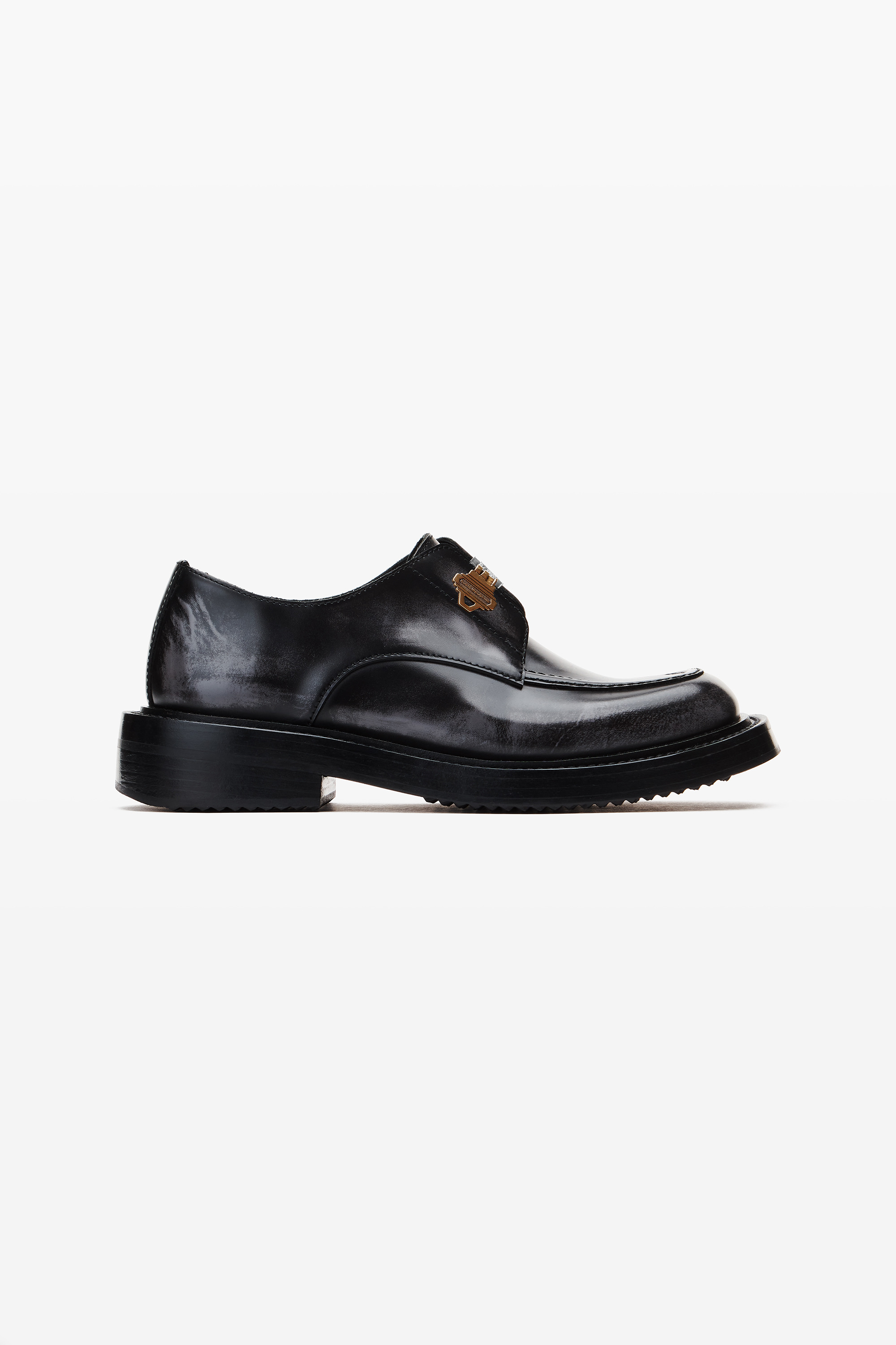 this slip-on derby with a spazzalato leather upper showcases logo graphics and key hardware trim. lined in calf leather, these dress shoes feature a stacked leather heel and a rubber outsole. - sheep leather lining - upper: calf leather - lining: sheep leather - outsole: rubber - made in spain - 30325F030978 composition Upper: 100%CALF LEATHER Lining: 100%Sheep Leather (Ovis Aries Aries) Outsole: 100%RUBBER