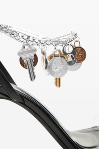 105mm leather slingback sandal featuring a logo nameplate chain ankle strap and translucent strap detail. finished with a smooth leather footbed and cow leather outsole. - open toe - upper: sheep leather/tpu - lining: sheep leather - outsole: cow leather - heel height: 105mm /4in - made in China - 30425S012001 composition Upper: 50%Sheep Leather (Ovis Aries Aries)/50%THERMOPLASTIC POLYURETHANE Lining: 100%Sheep Leather (Ovis Aries Aries) Outsole: 100%COW LEATHER