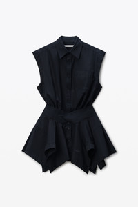 Crafted from two shirts refashioned together, this black pre-styled shirtdress features a 'V' shaped waistband made from turned-up collars, cut-off shirt pockets with logo embroidery, and a raw-edged hem. It sits at the upper thigh and is made of cotton. - pull-on style - body composition: 100% cotton - made in china - model is 5’11" and wears a size 4 - 4WC3256786001 composition Body: 100%COTTON