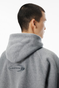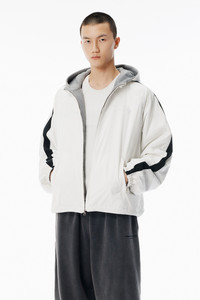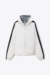 Unisex reversible track jacket in white and black essential nylon with self-fabric sleeve stripes. Features a cotton terry lining, bungee hood, and tonal logo embroidery at chest and back. - adjustable bungee hood - long sleeves - front zip pockets - oversized fit - female model is 5'11" and wears a size s - male model is 6'2" and wears a size m - body composition: 71% polyester / 29% polyamide - made in China - UWC1252038971 composition Body: 71%POLYESTER/29%POLYAMIDE Lining: 75%COTTON/25%POLYESTER Filling: 100%POLYESTER
