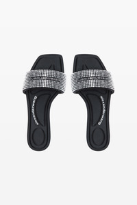 crystal hotfix animates these black satin sandals with leather comfort footbeds. - open toe - comfort footbed - upper: 97% polyester/3% elastane - trim: crystal glass - lining: 50% sheep leather/50% polyester - outsole: cow leather - made in china - model is 5'10" and wears size s - 30325S007012C composition Upper: 97%POLYESTER/3%ELASTANE Embellishment: 100%CRYSTAL GLASS Lining: 50%Sheep Leather (Ovis Aries Aries)/50%POLYESTER Outsole: 100%COW LEATHER