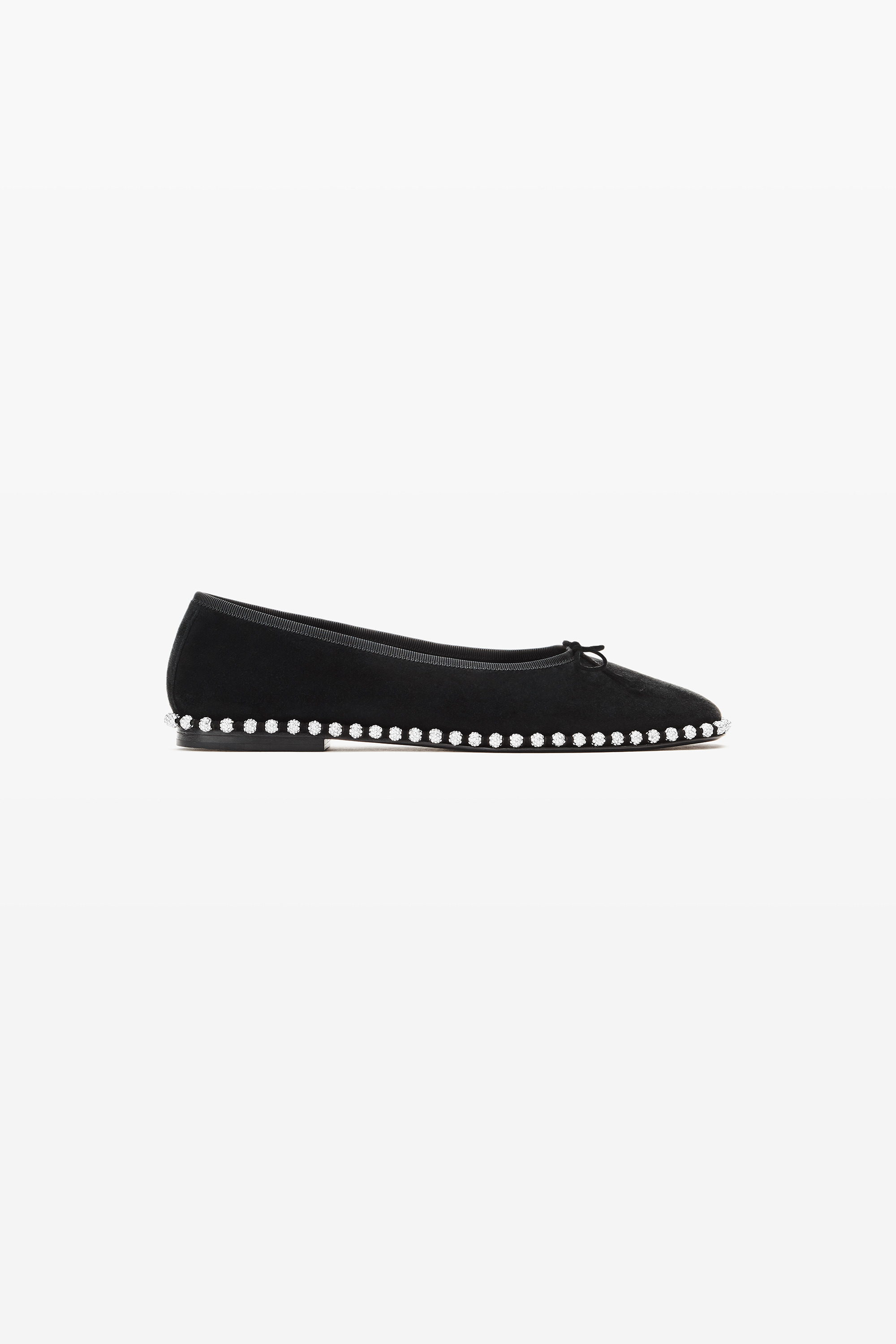 a black suede upper contrasted by crystal ball chain trim completes the Lina ballerina flat. - round toe - upper: suede - lining: sheep leather - outsole: cow leather - made in China - 30425F030001 composition Upper: 100%SHEEP SUEDE (OVIS ARIES ARIES) Lining: 100%Sheep Leather (Ovis Aries Aries) Outsole: 100%COW LEATHER