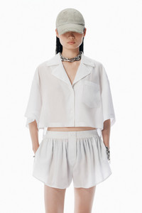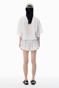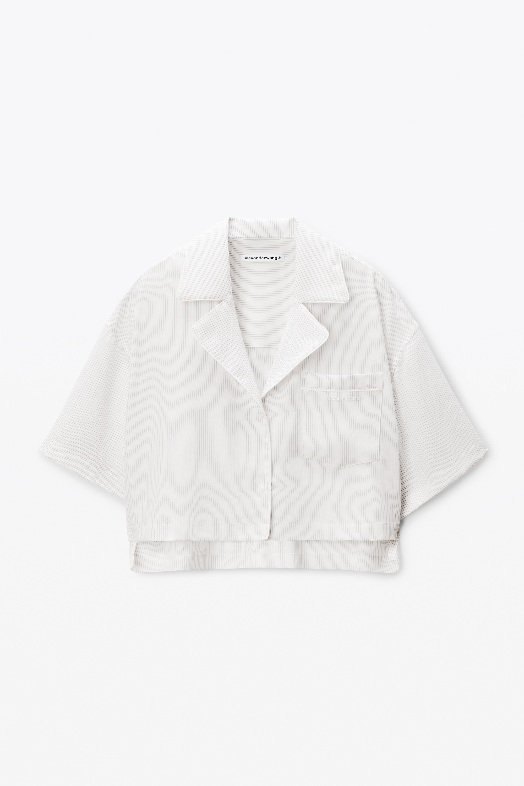 Piped trim, a classic chest pocket, and a notched collar accentuate the pajama-style design of this black and white oversized shirt. It features side vents and a stepped hem, fastened with a button closure. - notched collar - button collar - body composition: 100% lyocell - made in china - model is 5'11" and wears a size s - 4WC3251099971 composition Body: 100%LYOCELL