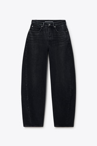 grey aged denim cut into a mid-rise oversized rounded leg. Twisted side seams wrap the leg for a sculptural, curved effect, finished with a hidden button fly and crystal hotfix logo at the back pockets. - grey aged - Concealed button fly closure - Body Composition: 100% cotton. - Model is 5'11" and Wears a Size 27 - Made in China - 4DC1264112031 composition Body: 100% COTTON