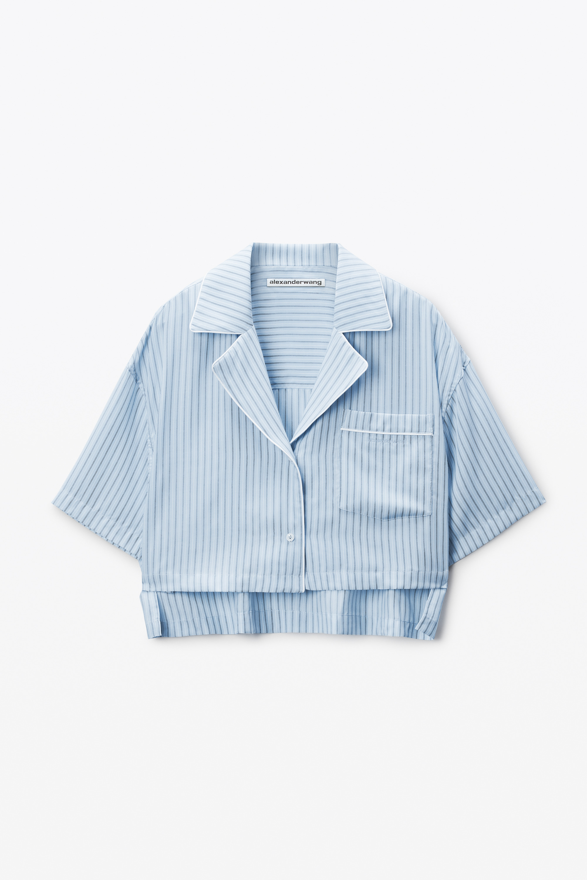 Piped trim, a classic chest pocket, and a notched collar accentuate the pajama-style design of this oxford blue oversized shirt. It features side vents and a stepped hem, fastened with a button closure. - notched collar - button collar - body composition: 100% lyocell - made in china - model is 5'11" and wears a size s - 4WC3251099426 composition Body: 100%LYOCELL