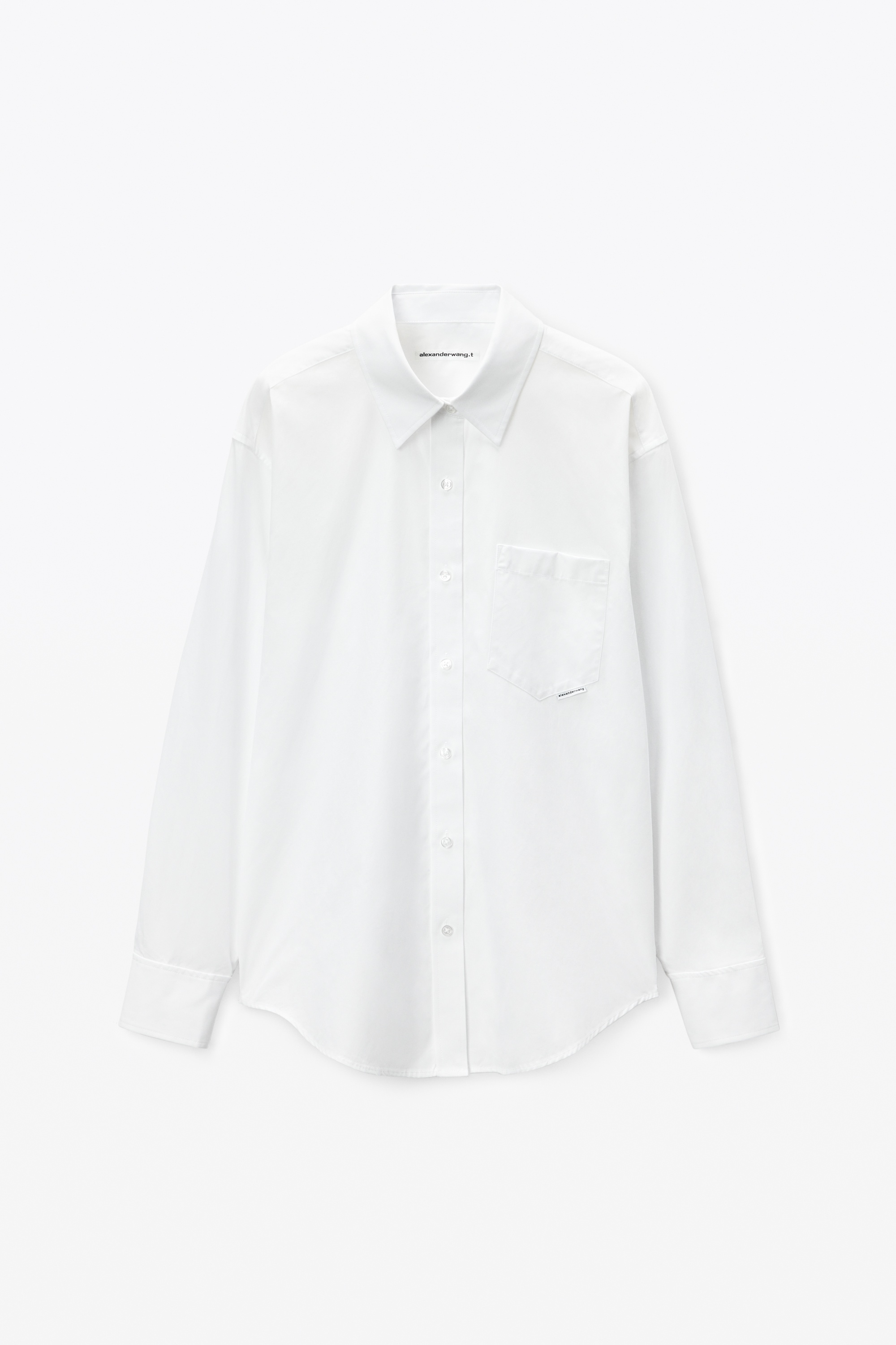 Designed in an oversized boyfriend silhouette, this white button-down shirt draws inspiration from traditional men's shirting. It features a chest pocket on the left side with a logo flag tag, in addition to buttons at the center front and cuff. - unlined - composition:100% cotton - made in china - oversized fit, hits below the hip - model wears size s - 4WC2241482100 composition Body/Exterieur: 100%COTTON