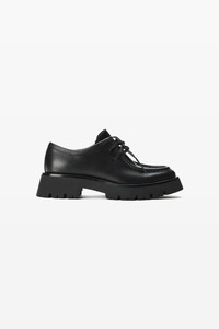 Smooth cow leather shapes this flat lace-up shoe set on a rubber lug outsole. A calf leather lining and footbed ground the style, finished with a metal logo slider at the laces. - Black - Round toe - upper: cow leather - lining & footbed: calf leather - outsole: rubber - Made in China - 30126F004001 composition Upper: 100%COW LEATHER Lining: 100%CALF LEATHER Outsole: 100%RUBBER