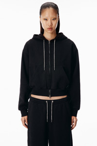 a classic zip-up hoodie finished with a rhinestone drawcord. designed for everyday wear with a subtle, elevated shine. add a touch of glamour to off-duty looks. - Black - body composition: 100% cotton - made in china - 1CC2262779001