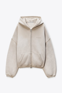 Washed khaki oversized hoodie in organic terry, finished with an artisanal solar wash and clear allover tossed hotfix. Designed with dropped shoulders and tonal screenprint at the chest for a low-key signature effect. - Washed Khaki - Hood - Dropped shoulders - Two-way front zip closure - Kangaroo pocket - Rib cuffs and hem - Body composition: 75% Cotton / 25% Polyester - Trim: 99% Cotton / 1% Elastane - Female Model is 5'11" and Wears a Size S - Male Model is 6'1" and wears a size M - Made in China - UCC1262300216A composition Body: 75%COTTON/25%POLYESTER Rib Trim: 99%COTTON/1%ELASTANE