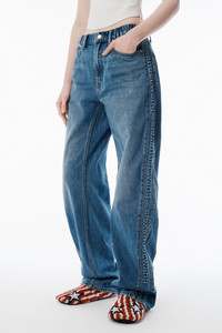 Balloon jogger in deep blue lightweight indigo denim with silicone-injected logo side panels. Designed with a mid-rise waist and wide, rounded leg shape, the style features a twisted side seam, elasticated waistband, and classic five-pocket construction. - elasticated waistband - zip fly closure - five-pocket style - mid-rise balloon jogger silhouette - model is 5'11" and wears a size 27 - body composition: 64% cotton / 21% polylactide / 15% lyocell - made in China - 4DC4254937401 composition Body: 64%COTTON/21%POLYLACTIDE/15%LYOCELL