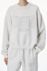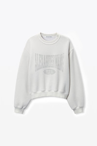 This faded-effect white sweatshirt features a tonal distressed logo graphic. - crewneck - long-sleeves - body composition: 75% cotton/25% polyester - trim: 97% cotton/3% elastane - made in Hong Kong - model is 5'10" and wears a size s - 4CC2251539132 composition Body: 75%COTTON/25%POLYESTER Rib 1: 97%COTTON/3%ELASTANE