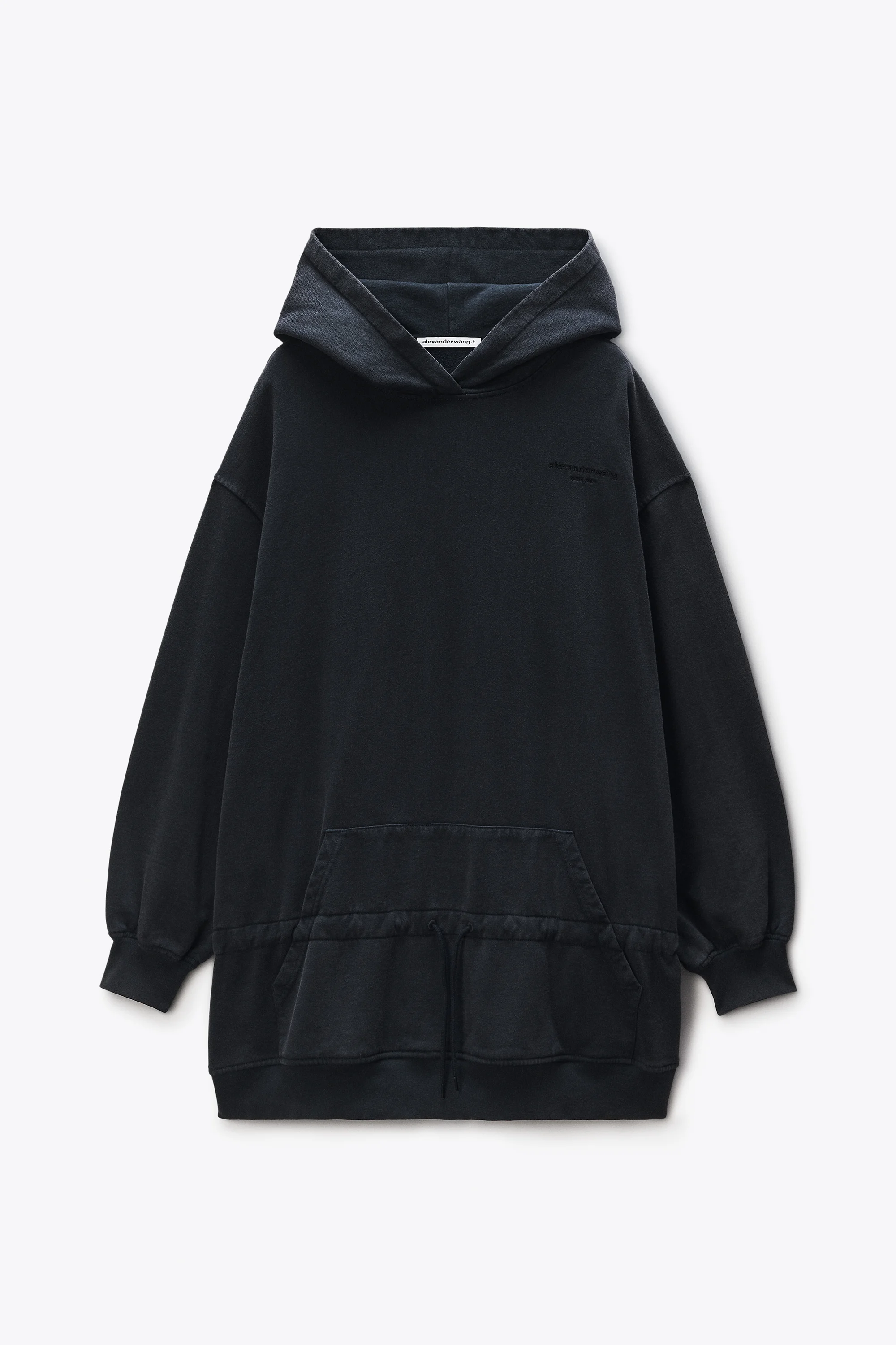 washed black mini hoodie dress in organic dry terry. Designed with a cinched drop waist and exaggerated flared hem for dramatic proportion play. - Washed black - Kangaroo pocket at front - Drawcord waistband - Pulls over - Side seam pockets - Body Composition: 100% Cotton - Body Composition: 100% Cotton - Made in Portugal - Model is 5'11" and Wears a Size S - 4CC1261176011 composition Body: 100%COTTON Rib Trim: 100%COTTON Lining: 100%COTTON