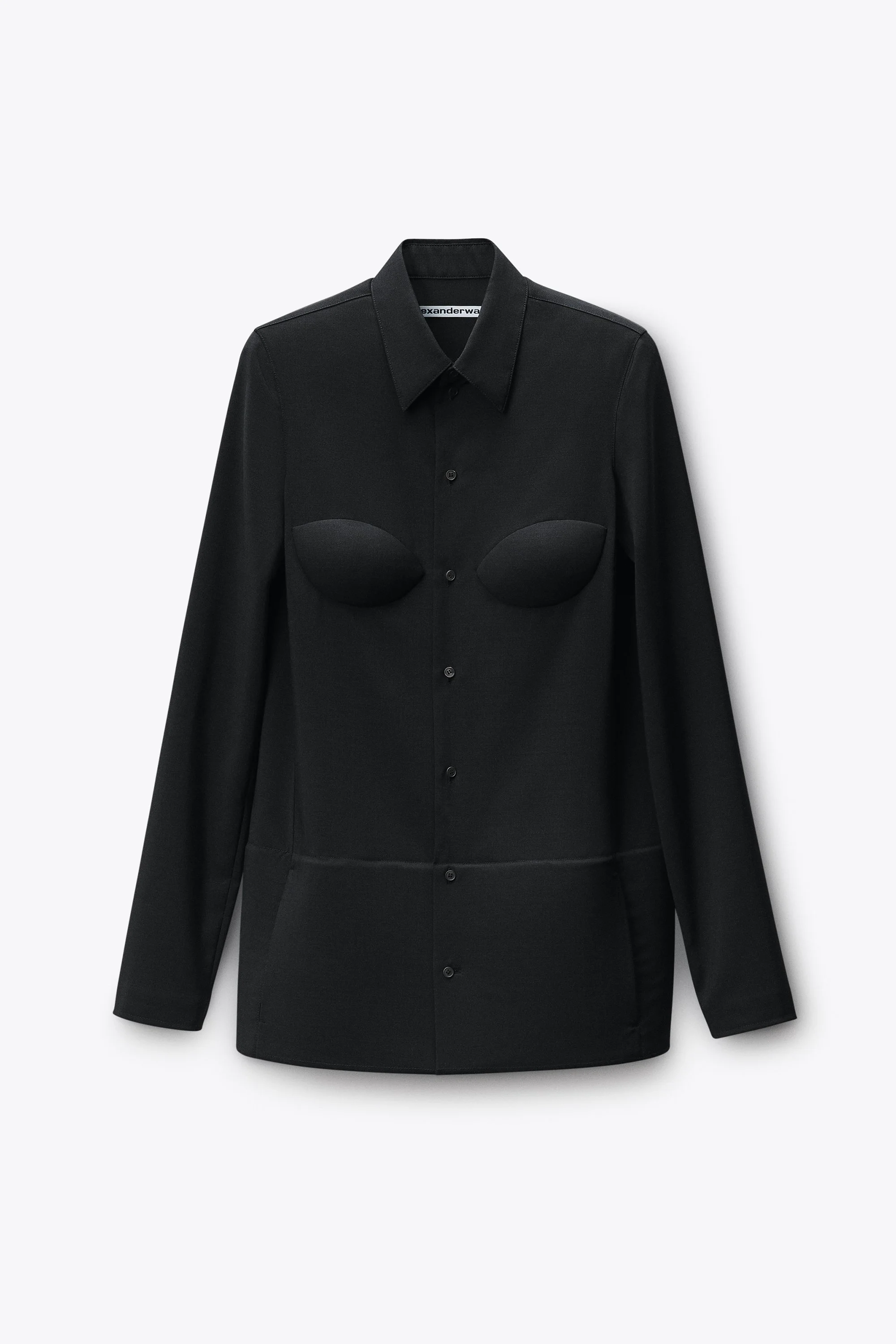 a streamlined shirt dress featuring a foam hem. engineered to hold form and define the silhouette. - charcoal - body composition: 100% stretch wool mohair - made in china - 1WC2267229010 composition Body/Exterieur 100.0%: 84%WOOL (OVIS ARIES ARIES)/16%MOHAIR Filling/Remplissage 100.0%: 100%RUBBER