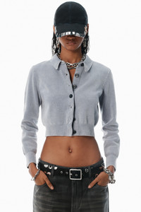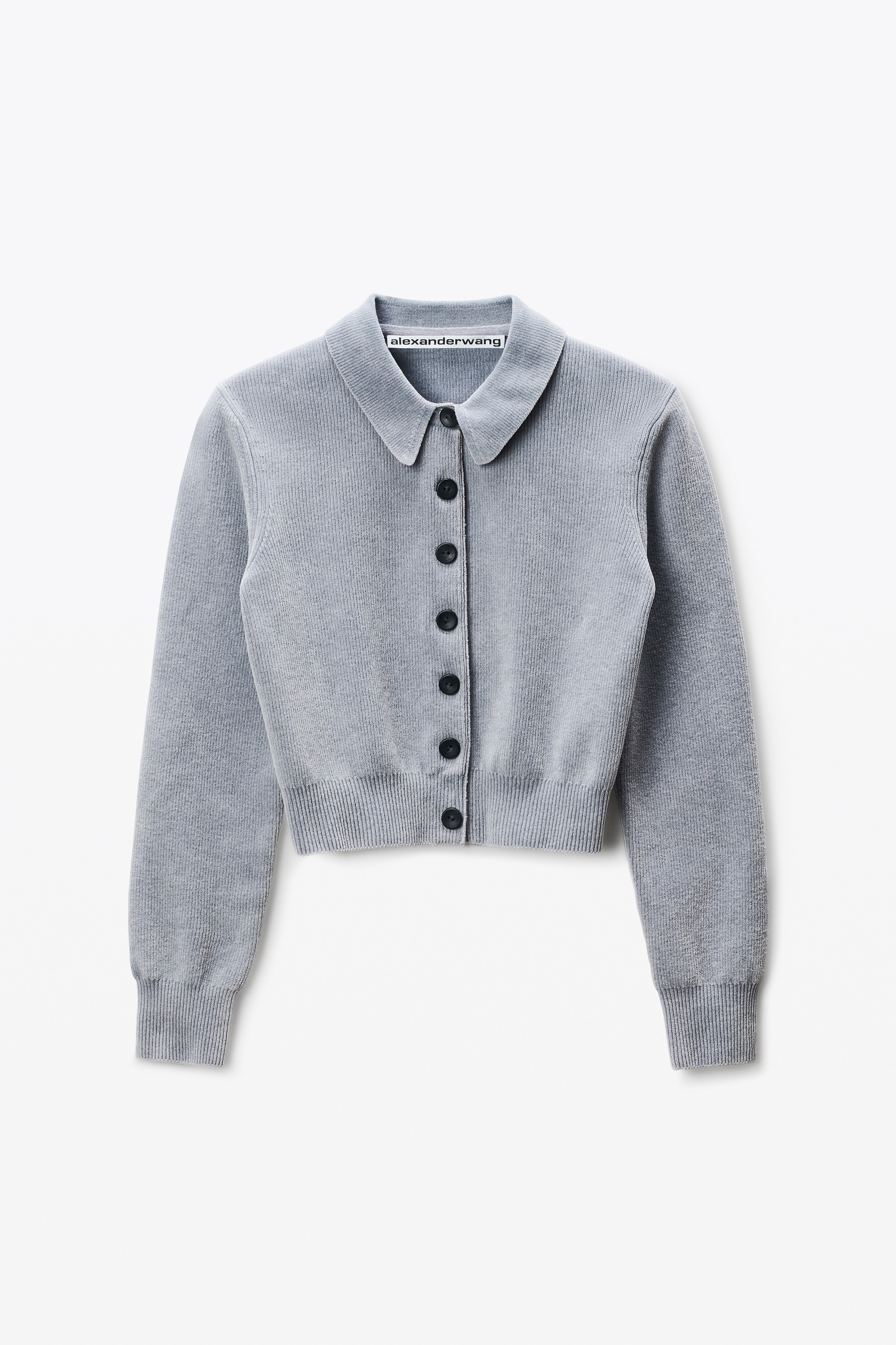Brushed cotton-blend chenille captures the pronounced tonal variations of this grey acid wash cardigan. Branded faux horn buttons and sweater-rib trim lend an elevated touch to this transitional knitwear style. - crewneck - long sleeves - relaxed fit, hits at waist - body composition: 88% cotton/10% polyamide/2% elastane - hits above waist - model is 5'10" and wears a size s - made in china - 1KC3253055057 composition Body: 88%COTTON/10%POLYAMIDE/2%ELASTANE Trim: 89%COTTON/10%POLYAMIDE/1%ELASTANE