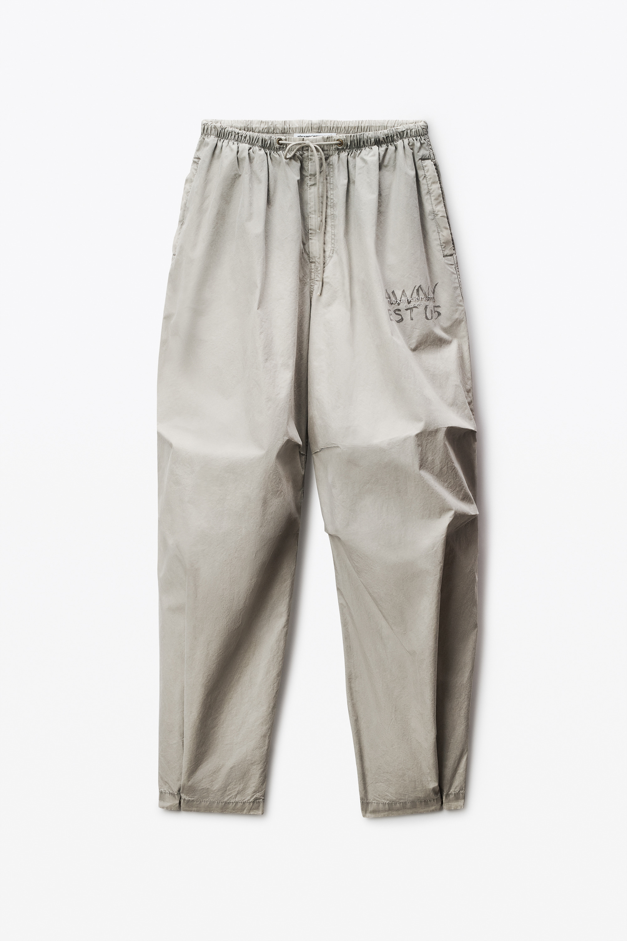 These stone-grey parachute pants feature a stacked, articulated leg with a pleat at the ankle and logo embroidery on the left hip. They fasten with a zip fly and snap closure. - zip fly, snap closure - mid rise - side-zip pockets and back welt pockets - - body composition: 100% cotton - made in china - model is 5'11" and wears a size s - 4WC3254846051 composition Body: 100%COTTON