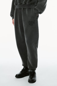 These faded black sweatpants in heavy cotton terry feature logo detailing at the hip, side-seam pockets, and an elasticated waistband. - elasticated waistband - side-seam pockets - body composition: 75% cotton/25% polyester - made in Hong Kong - model is 5'10" and wears a size s - 4CC2254420020A composition Body: 75%COTTON/25%POLYESTER