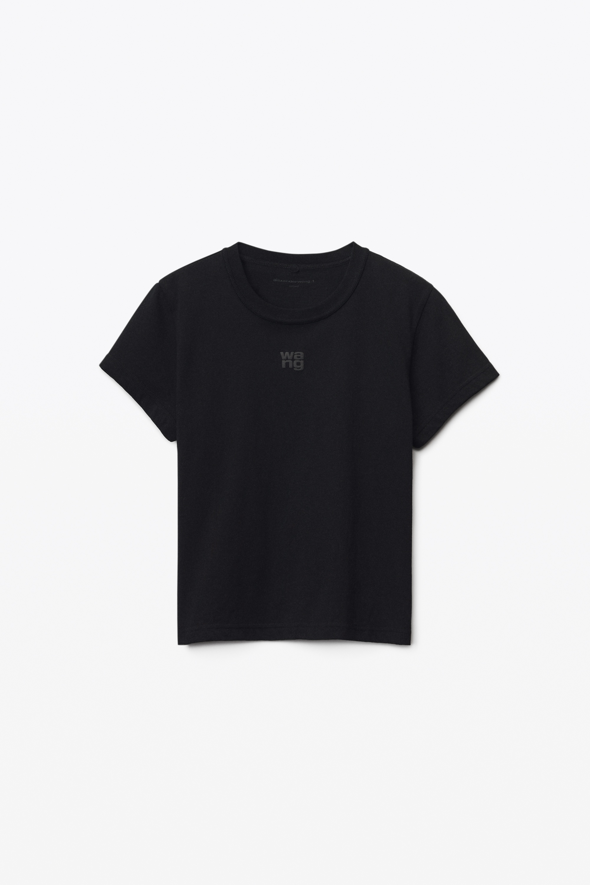 black classic short-sleeve shrunken tee in structured jersey with a stacked puff print logo at neckline - relaxed shrunken fit - hip-length bottom hem - composition: 100% cotton - made in china - model is 5'10" and wears size s - 4CC3221358001 composition Body/Exterieur: 100%COTTON Rib 1/Tricot Cotele: 100%COTTON